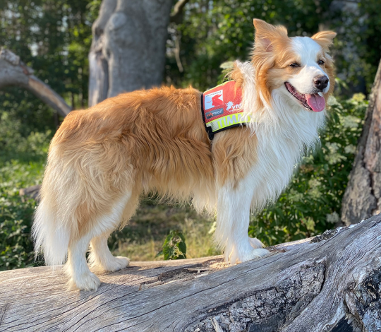 Mit seiner Funktion als „Botschafter der Herzlichkeit“ tritt Timmy auch in Italien bei der Fachmesse REAS in Erscheinung und reist somit öfter von Hannover nach Montichiari. Bei einer dieser Dienstreisen legte Timmy einen Zwischenstopp bei uns in Salzburg ein. Und wie könnte es anders sein: Das gesamte Team von TEXPORT ist dem Charme des vierbeinigen Medienprofis auf Anhieb erlegen und so stand schon bald fest, dass wir Timmy mit einer maßgeschneiderten Kenndecke ausstatten würden. Kenndecken nennt man das Geschirr für Rettungs- und Assistenzhunde. Somit ist Timmy mit seiner „Uniform“, die das Logo der INTERSCHUTZ und des vfdb trägt, für seinen großen Einsatz im Juni stilsicher ausgestattet.