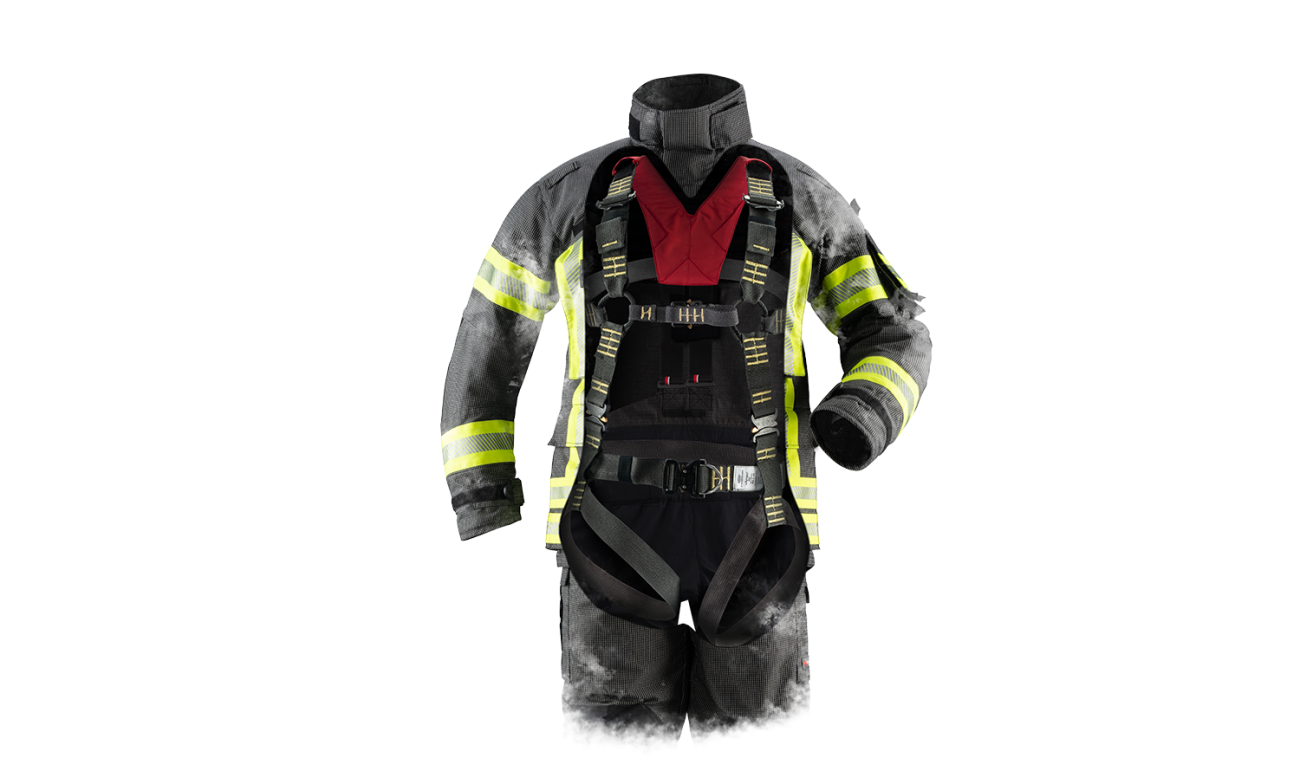 The TEXPORT Rescue Belt System is an innovative and patented body harness system that is fully integrated into the protective clothing. The uniqueness lies in the combination of fulfilling standards EN 469, EN 361, EN 358 and EN 813 in a single protective suit. TEXPORT thus creates a revolutionary safety concept that provides optimal protection to first responders – according to the motto “Protecting You”.