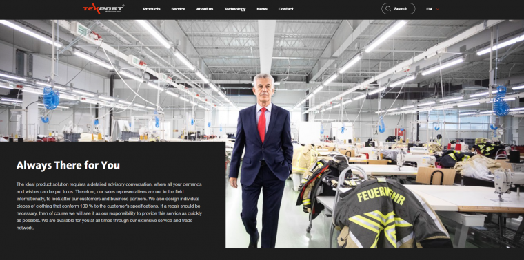 As a customer, partner and friend of TEXPORT, you have already known this for a while: We always strive to find the optimum, every time and everywhere. This applies to our new website, of course, because just “being online” is not enough for us. Our goal is to use this website to open a new chapter in our communication with you. With that in mind, our new website is intentionally filled with images and videos and will, as of now, constitute the heart of our marketing. It’s not just a re-design, just an optical update. In fact, our new website has been rethought, planned again from the ground up, and implemented anew.