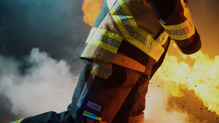 The AIR BLOCKER® FULL BODY system of the TEXPORT FIRE X-FLASH is an innovative insulation system, which is distributed over the body at key points in the jacket and trousers. The special Air Blocker® structure creates a constant air cushion in the pressure zones, such as the shoulder, suspenders and hip area when wearing a breathing apparatus, as well as in the thigh and upper arm area when crawling. In the hip area, the Air Blocker® jacket and trousers have a slightly overlapping design to ensure optimal protection in the hip area during rotational movements of the upper body.