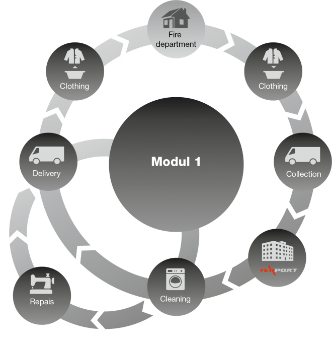 Missions expose your protective clothing to extreme stress and dirt. An outstanding cleaning concept with the correct methods and materials is needed to extend the service life of your clothing and to guarantee sustainable conformity to standards. TEXPORT Clean & Care® is precisely this kind of concept. TEXPORT worked painstakingly for 18 months to develop Clean & Care®, the ideal cleaning concept tailored precisely to fulfil the special requirements of your high-quality protective clothing, to prevent substandard care, and to set new standards in logistics services.
