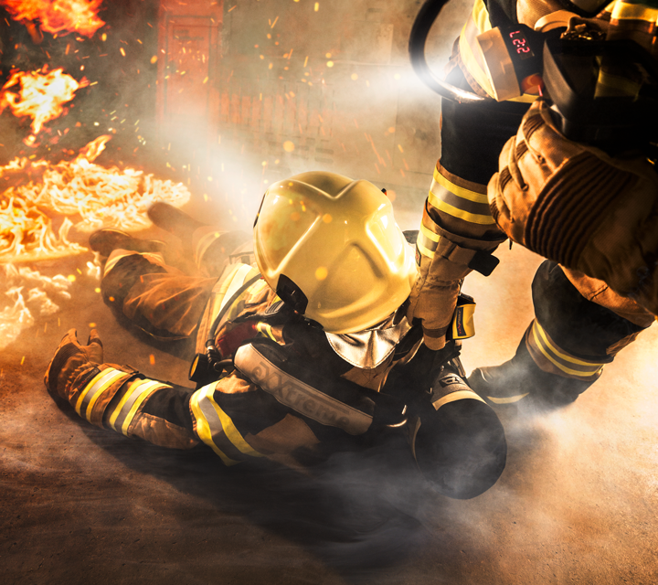 makes quick rescue (crash rescue) of an injured fireman from immediately life-threatening situation (dragging).